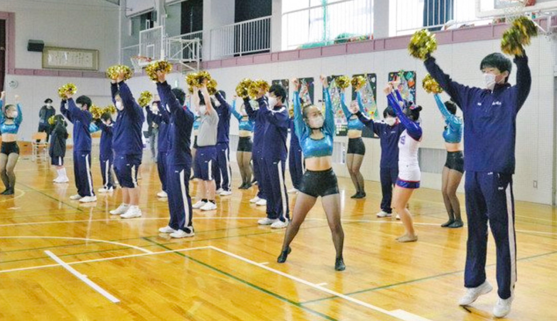 福井南特別支援学校は21日、福井商業高チアリーダー部JETS(ジェッツ)の1〜3年生26人を学校に招き、交流会を開いた。高等部の1年生らはダンスを教えてもらい、一緒に踊った。(成田真美)