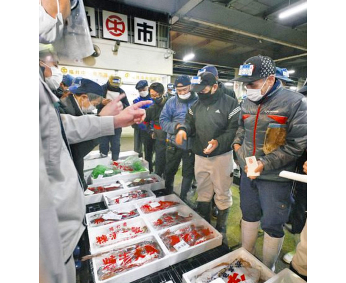 初競り、掛け声響く 福井・中央卸売市場 三枝 清美 3年前 競り人(左)の威勢のいい掛け声が飛び交う中、海産物の大きさなどを見極めながら次々と競り落としていく買い手=5日、福井市中央卸売市場で(山田陽撮影) 福井市の中央卸売市場で5日、初競りがあった。競りを前に行われた「初市式」には市場関係者ら50人が集まり、今年1年の商売繁盛を祈念した。 (中日新聞福井版)続きはこちらから 日々URALAからのお知らせをLINEで受け取れます!