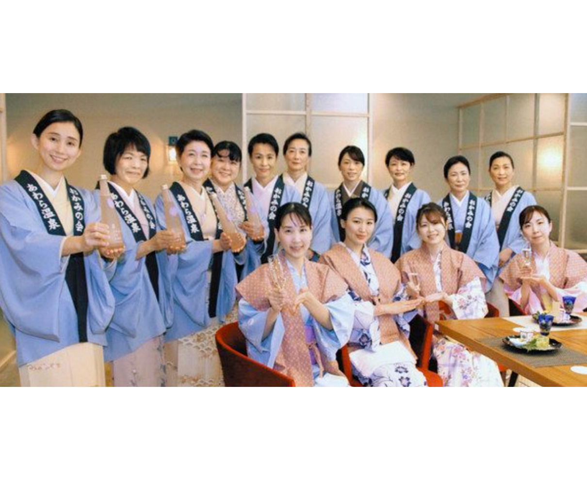 あわら温泉(あわら市)の旅館のおかみらでつくる「あわら温泉女将(おかみ)の会」が、オリジナル日本酒「女将」をベースにしたスパークリング日本酒「OKAMI no AWA(おかみの泡)」を開発した。20日の提供開始を前に15日、市内のグランディア芳泉でお披露目した。
