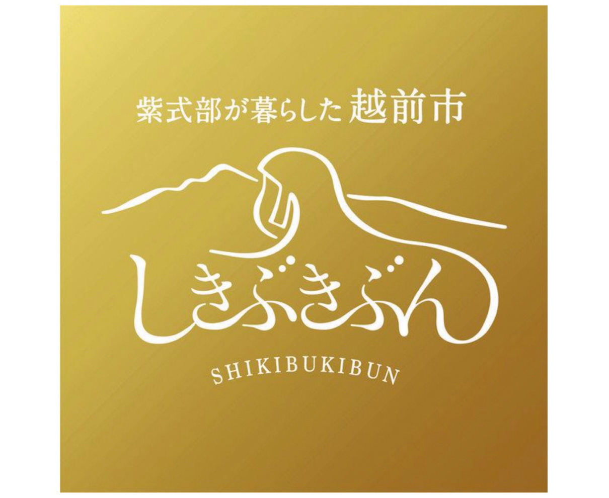 越前市は28日、紫式部ゆかりの地をアピールするロゴマークを発表した。金色を基調に、日野山を見つめる紫式部の後ろ姿とキャッチコピー「しきぶきぶん」の文字を合わせた。申請すれば誰でも広告物や土産物などに無償で使用でき、同日から受け付けを開始した。市では「ぜひ活用して、越前市のPRを一緒にしてほしい」とアピールしている。
