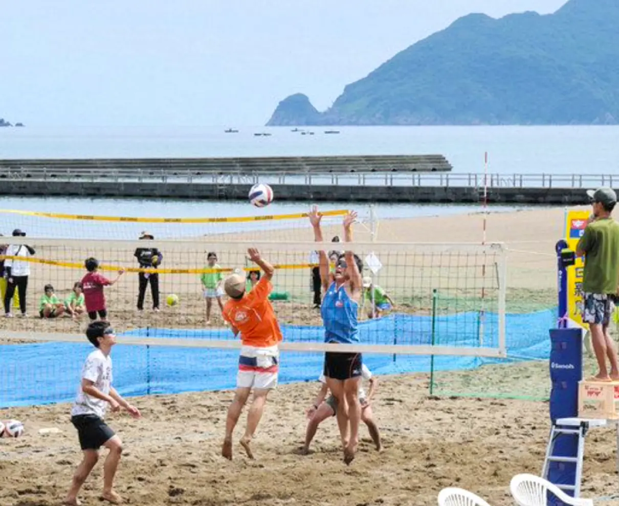 日刊県民福井30年記念ビーチバレーボール大会(日刊県民福井、中日新聞社主催)が2日、小浜市の若狭鯉川シーサイドパークで開かれた。46チーム、84人が出場し、福井国体を機に整備された「ビーチバレーボールの聖地」で熱戦を繰り広げた。(藤共生)