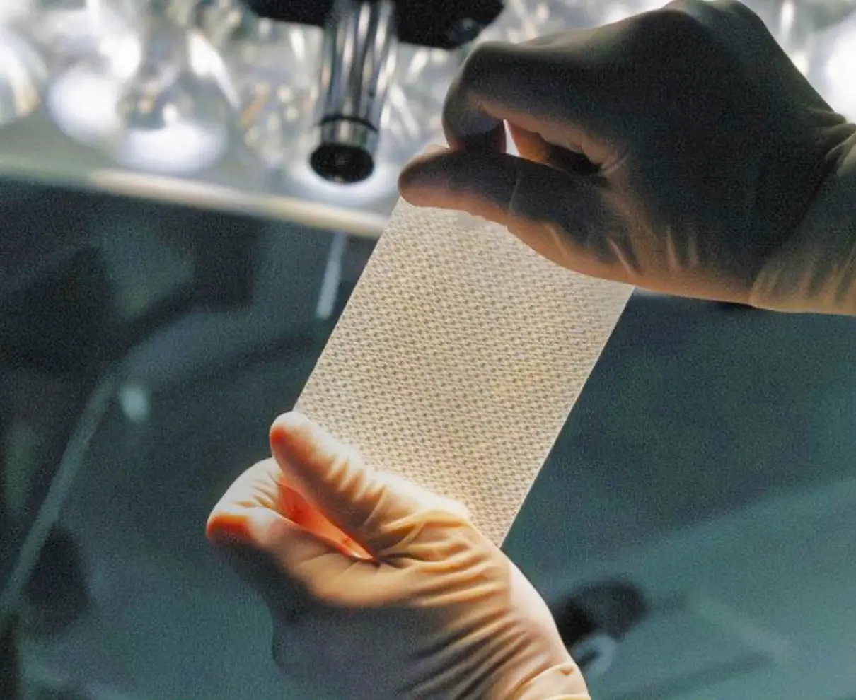 心臓の一部欠損した組織などを代替するための医療材料「心・血管修復パッチ」の開発を手がけるニット生地製造の「福井経編(たてあみ)興業」(福井市、高木義秀社長)などは12日、厚生労働省の製造販売承認を取得した、と発表した。製品名は「シンフォリウム」で、承認は11日付。子どもの成長によって大きくなる心臓にも対応でき、再手術のリスク低減が期待できる。今後は国の保険適用に関する審査を経て、2023年度中に発売予定だ。(北原愛)