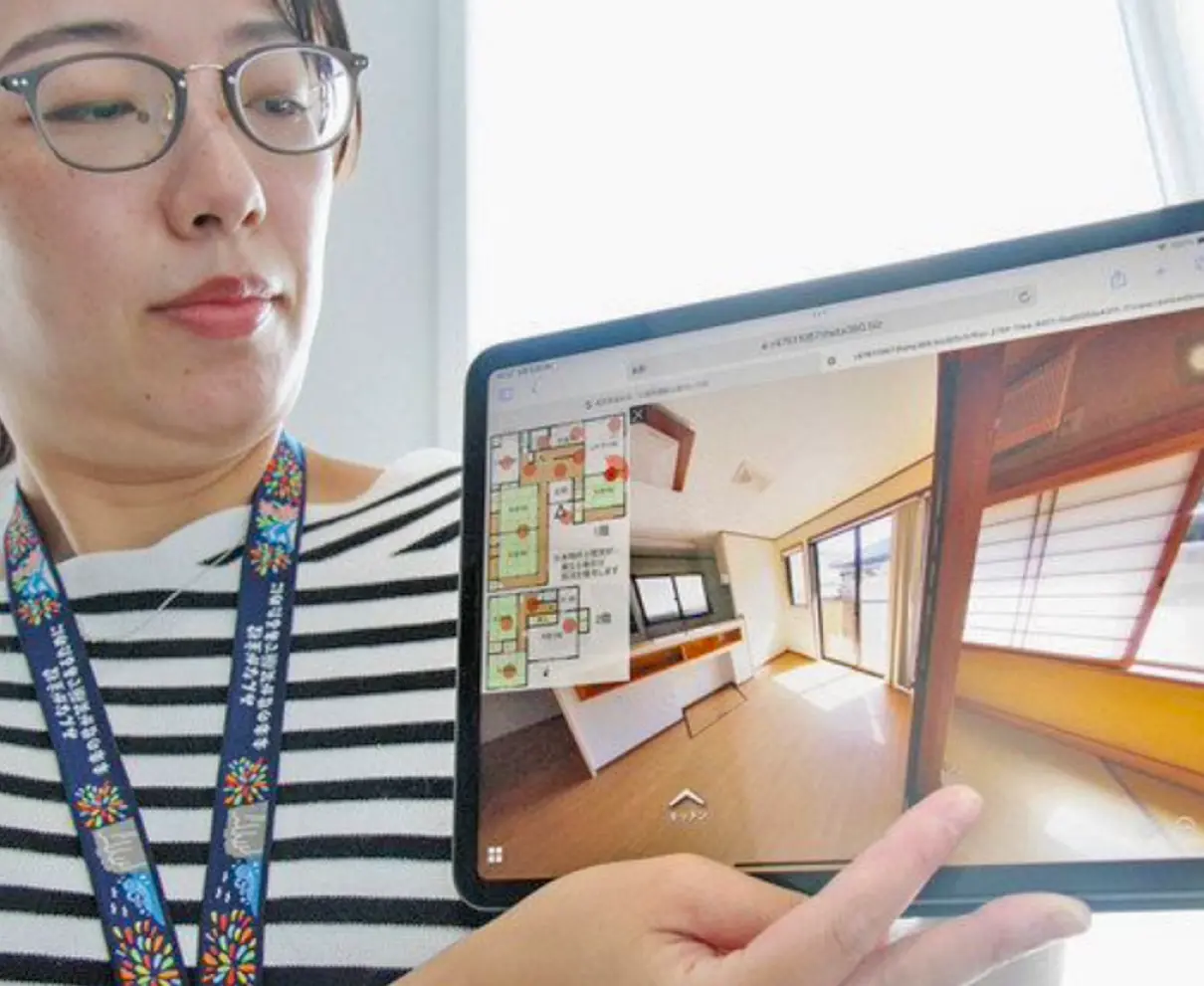 坂井市はウェブサイト「空き家情報バンク」の登録物件に、全方位が見渡せる「360度カメラ」の画像を導入した。利用者は、いつでも、どこでも内覧会のようなバーチャルツアーを体験できる。市によると、県内自治体では初の試み。
