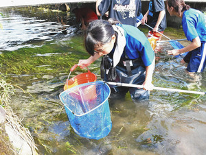 大野市本願清水イトヨの里は三日、市の魚である「イトヨ」の生息調査を市内の河川で行った。市内の開成中学校の生徒二十一人が参加。川のイトヨは発見できなかったが、生徒らはふるさとの自然を守る意識を高めていた。