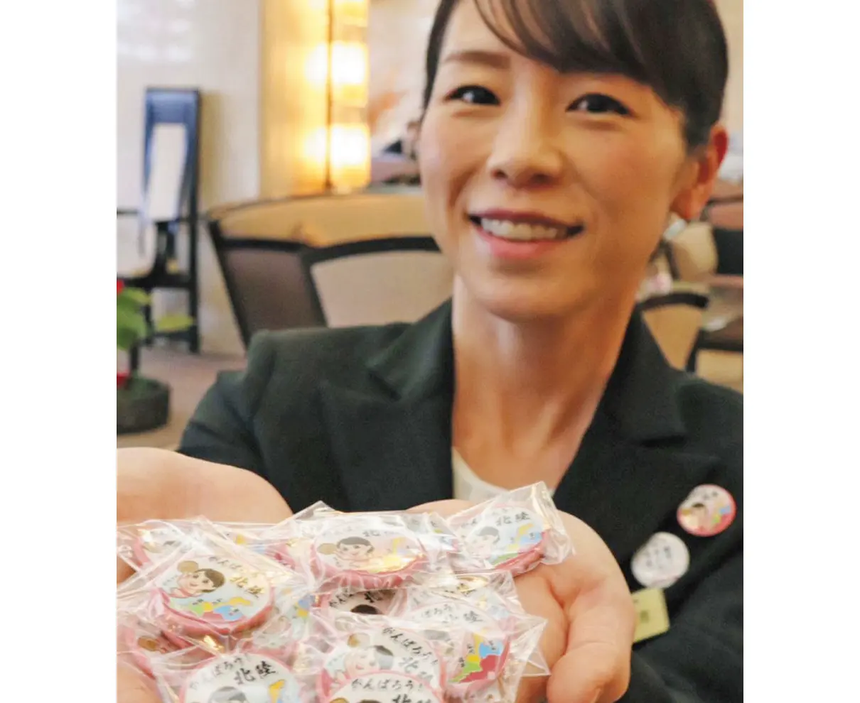 あわら温泉(あわら市)の老舗旅館「まつや千千(せんせん)」が、能登半島地震で被災した石川県内の旅館を応援する缶バッジを製作した。フロントなどで販売し、売り上げは全額を被災した旅館などに贈る。発案した若女将(おかみ)の伊藤理恵さん(41)は「北陸は一つ。石川が元気になったとき、お客さまに『北陸に行こう』と思ってもらえるよう、あわらが頑張らなければならない」と話す。(北原愛)