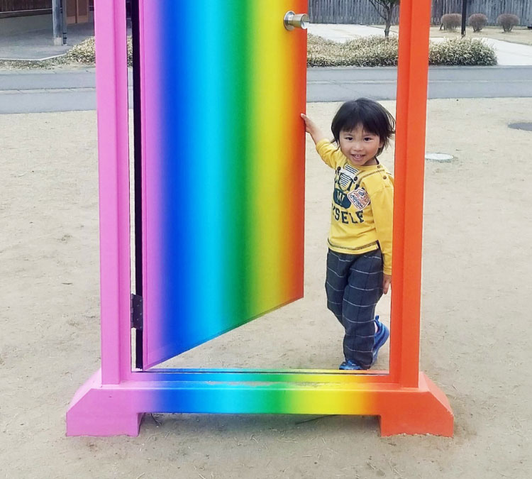 昨年誕生した虹色のドア『あわらハッピードア』です。誰でも開閉が自由で写真を撮って楽しむことができる、四次元ポケットから出てきたひみつ道具さながらのこちらの「ドア」には、もう出会えましたか? あわら市の観光名所を移動しフォトスポットとして活躍しているので、ぜひ親子で見つけて写真撮影を楽しんでくださいね。その名の通り幸せが訪れるかも……。