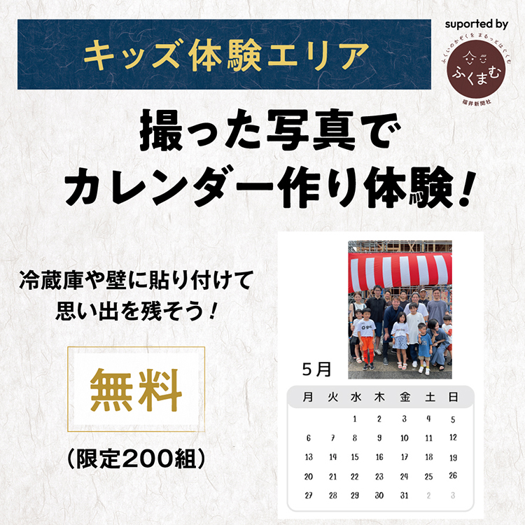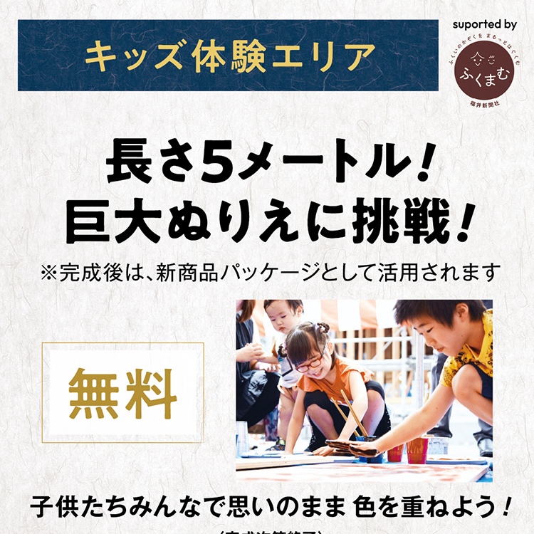 はい! キッズ体験があります。パッケージへのお絵描きや、巨大ぬり絵、カレンダー作りなど、大人も子供も楽しく遊んでいただけます。
