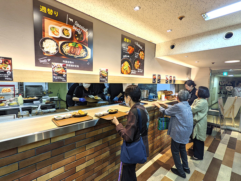 メニューは定番の「ハンバーグ定食」950円や「肉うどん」690円など、全10種を提供。小鉢や味噌汁のほかに、追加のお惣菜やデザートが選べ、ボリュームも満足度も高めです。『高島屋』の高島清次郎社長は「職員だけじゃなく、周辺で働く人や公園で遊ぶ人にも、お肉で元気になって欲しい」と話します。