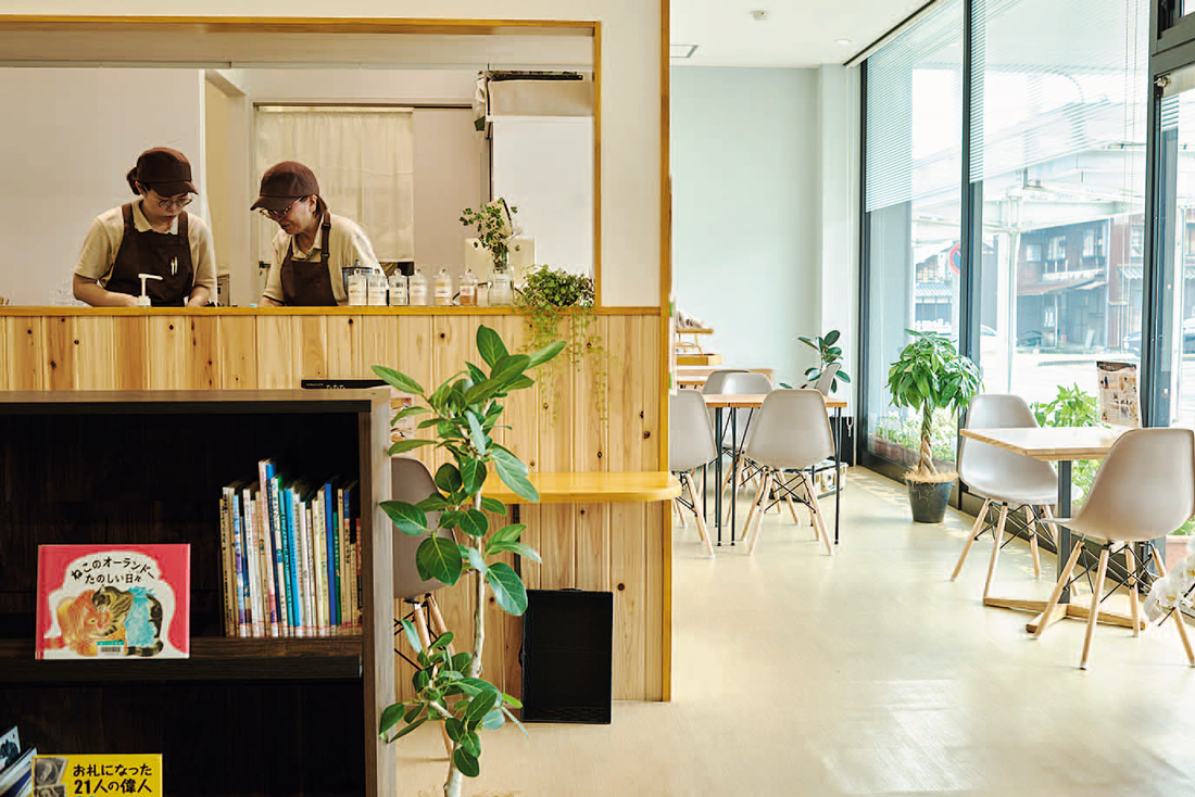 手作りスイーツやドリンクも健在で、ランチにもカフェタイムにも気軽に利用できる場所に。店内には鯖江市図書館の蔵書が約900冊並んでいるので、読書をしながら電車を待つのもおススメだ。