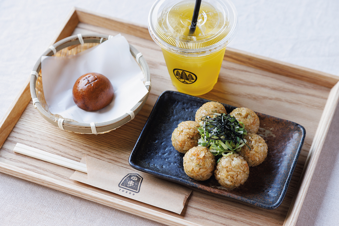 人気のキッチンカー『田歩(たふ)』が、平泉寺白山神社のすぐ側にお店をオープン。自家栽培の平泉寺産コシヒカリを使った、ひと口サイズの「焼きまるおにぎり」や、自家製米粉で作る「かりんとう饅頭」が、いつでも味わえるように。生まれも育ちも平泉寺という店主の小林さんは、「お米を通じてこの土地の魅力を届けたい」と、約2年前にキッチンカーをスタート。農薬も除草剤も使わず、自然と向き合いながら育てたお米で作る焼きおにぎりには、一粒ひと粒に土地のやさしさがにじんでいる。