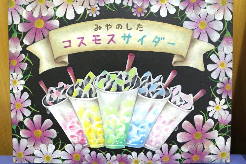 10/12の「コスモスまつり」当日には、手打ちそば、かきもち、焼き鳥、コスモスサイダーの販売も行います。