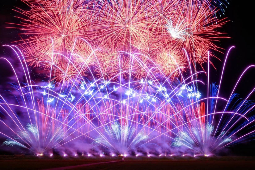 社西小学校西側の日野川河川敷で、一尺玉など約5000発が秋の夜空に打ち上がります。花火打ち上げまでの日中には「福井少年運動公園 こどもの国」で、おかしまきや凧あげなどの昔ながらの遊びやステージイベントなどを実施します。