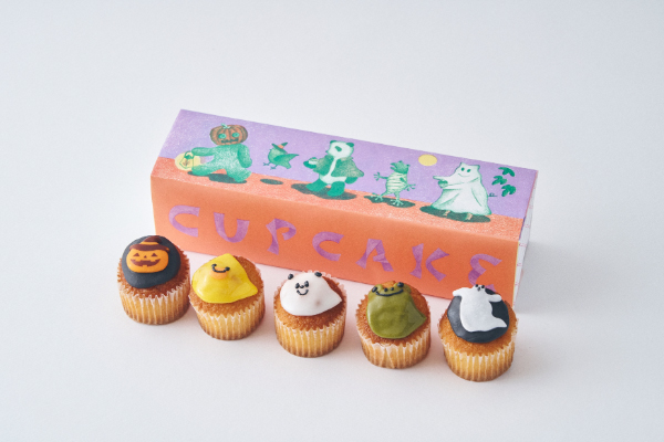 新作「ベイクドZOO ハロウィンカップケーキ」(税込1900円)は、プレミアムバニラカップケーキで仕立てた5種類のどうぶつたち(パンダ、ヒヨコ、カエル、ジャック・オー・ランタン、ゴースト)を詰め合わせ。