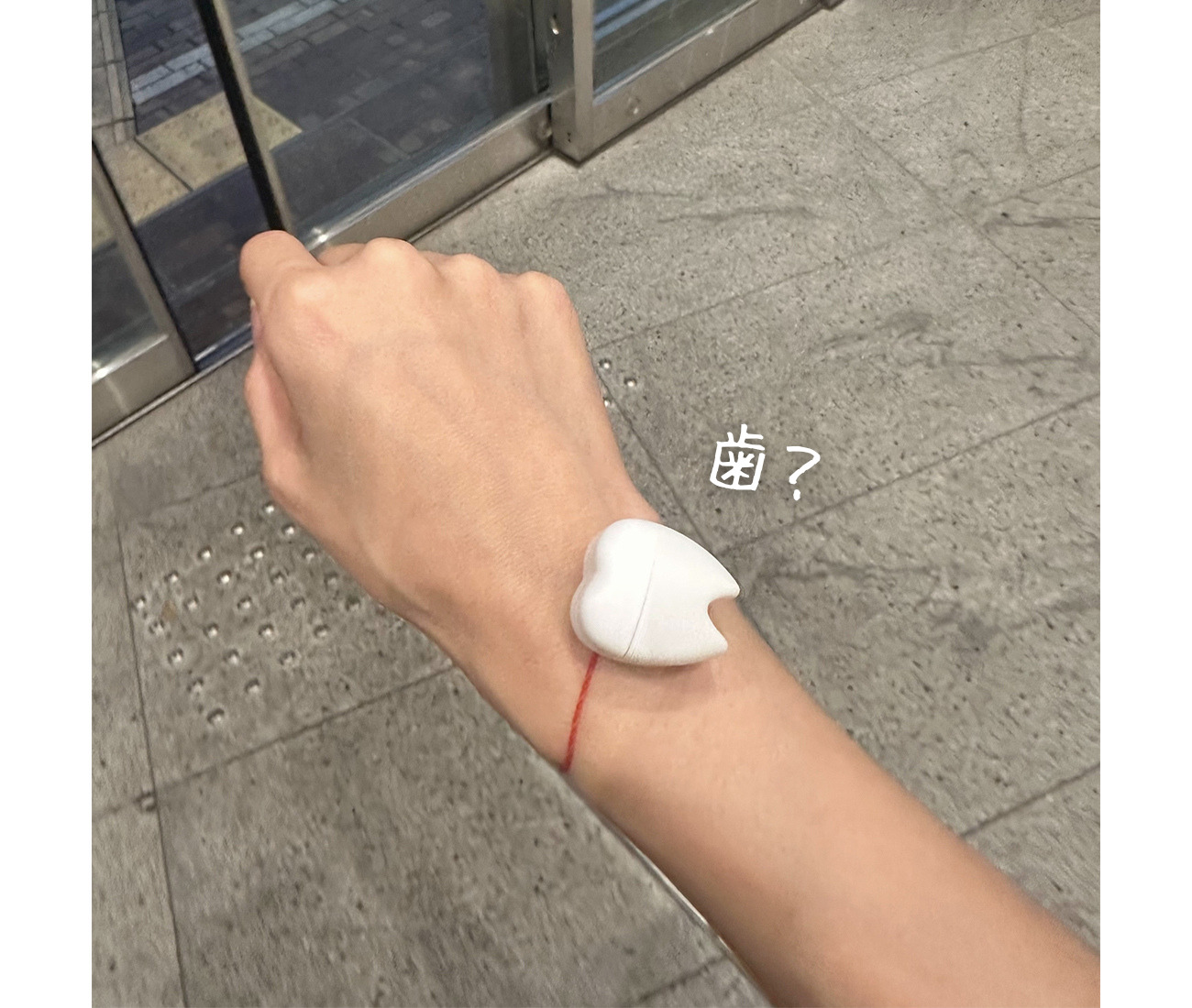 終わったらいつの間にか腕に、抜いた歯がつけられていました。笑