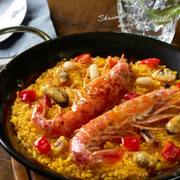 『森山ナポリ』ではピザのほかに、パエリアやアヒージョも取り扱います。「海老と魚介のパエリア」は、2尾のアカエビをドーンとのせた豪華な一品で、特別な日にもぴったり。丁寧に土鍋で炊き上げた石川県産コシヒカリを使い、魚介のスープ・パエリア米・具材を3層に仕立てて瞬間冷凍しています。食べる時は家庭のフライパンで10分温めるだけでOK。スープが先に溶け出し、旨みたっぷりの蒸気で全体を包み込むことで、出来立ての味わいが再現できます。