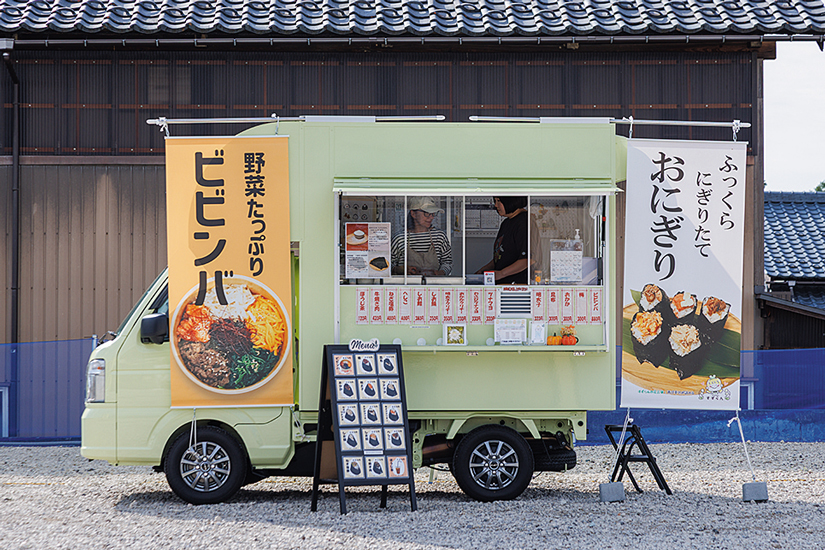 母娘で営む、おにぎりのキッチンカー。「人が集まる場所に、自分たちから会いに行きたい」という想いから、今日も丹南エリアを中心に軽やかに街をめぐる。おにぎりに使うのは、福井県産「いちほまれ」と、香り豊かで歯切れのいい有明海産の一番摘み海苔。ふっくら炊き上げたごはんを、空気をふくませるように軽く結ぶのが、ふわふわ食感の秘密だ。定番からちょっと気になる変わり種まで、種類もさまざま。これから寒くなる季節に向けて、限定メニューやお味噌汁の販売も始めていくそう。