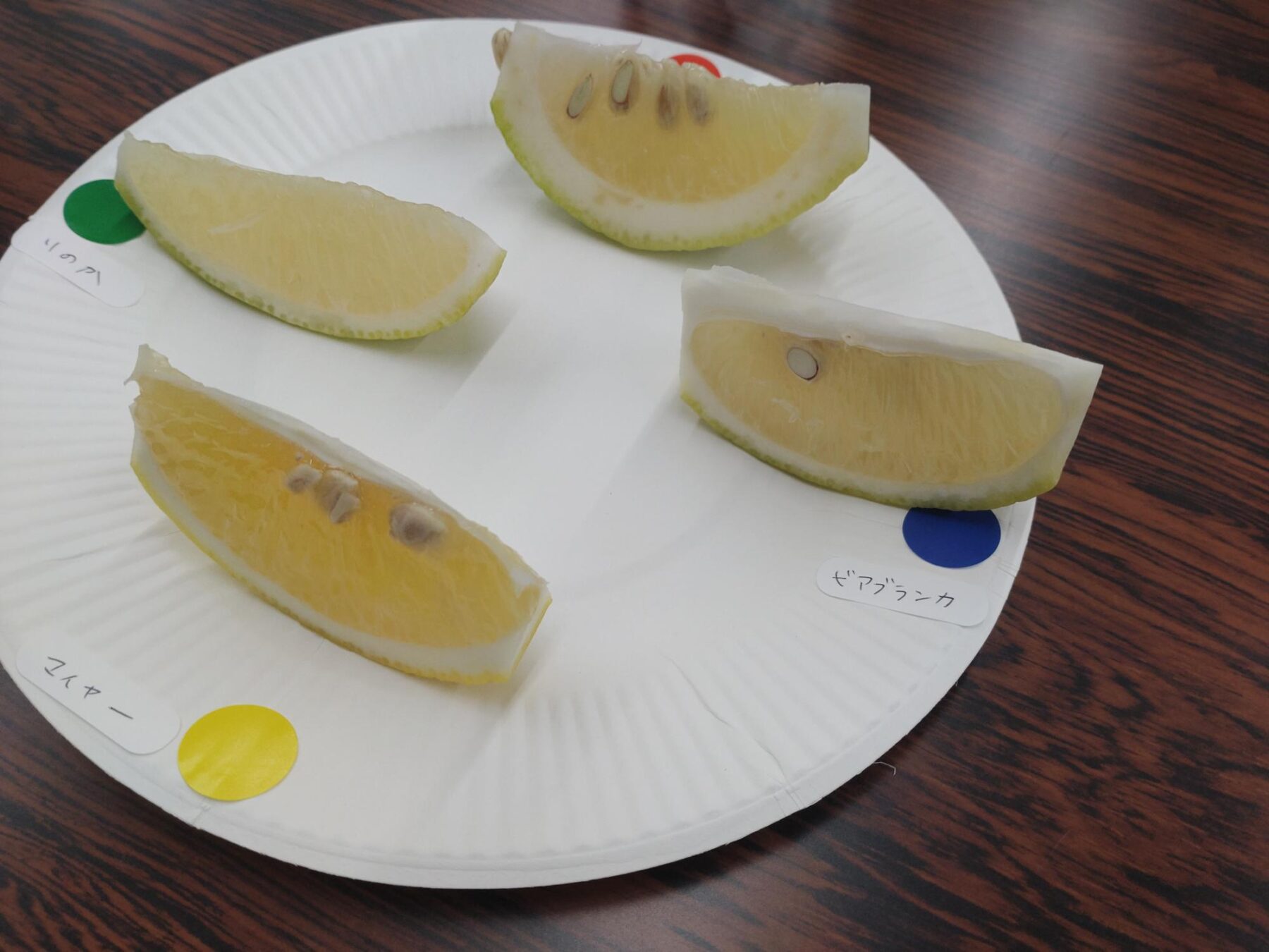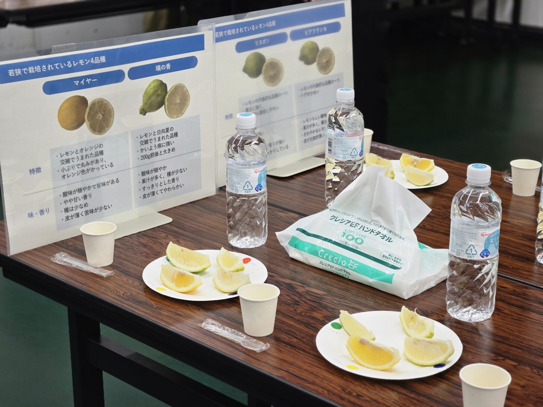 研修会の後半には、若狭地方で栽培されている「リスボン」「ビアフランカ」「マイヤー」「璃の香」の4品種による食べ比べを実施。香りの違い、酸味の強弱、果皮に感じる苦みや甘みなどを実際に確かめながら、それぞれの品種が持つ個性を確認する機会となった。