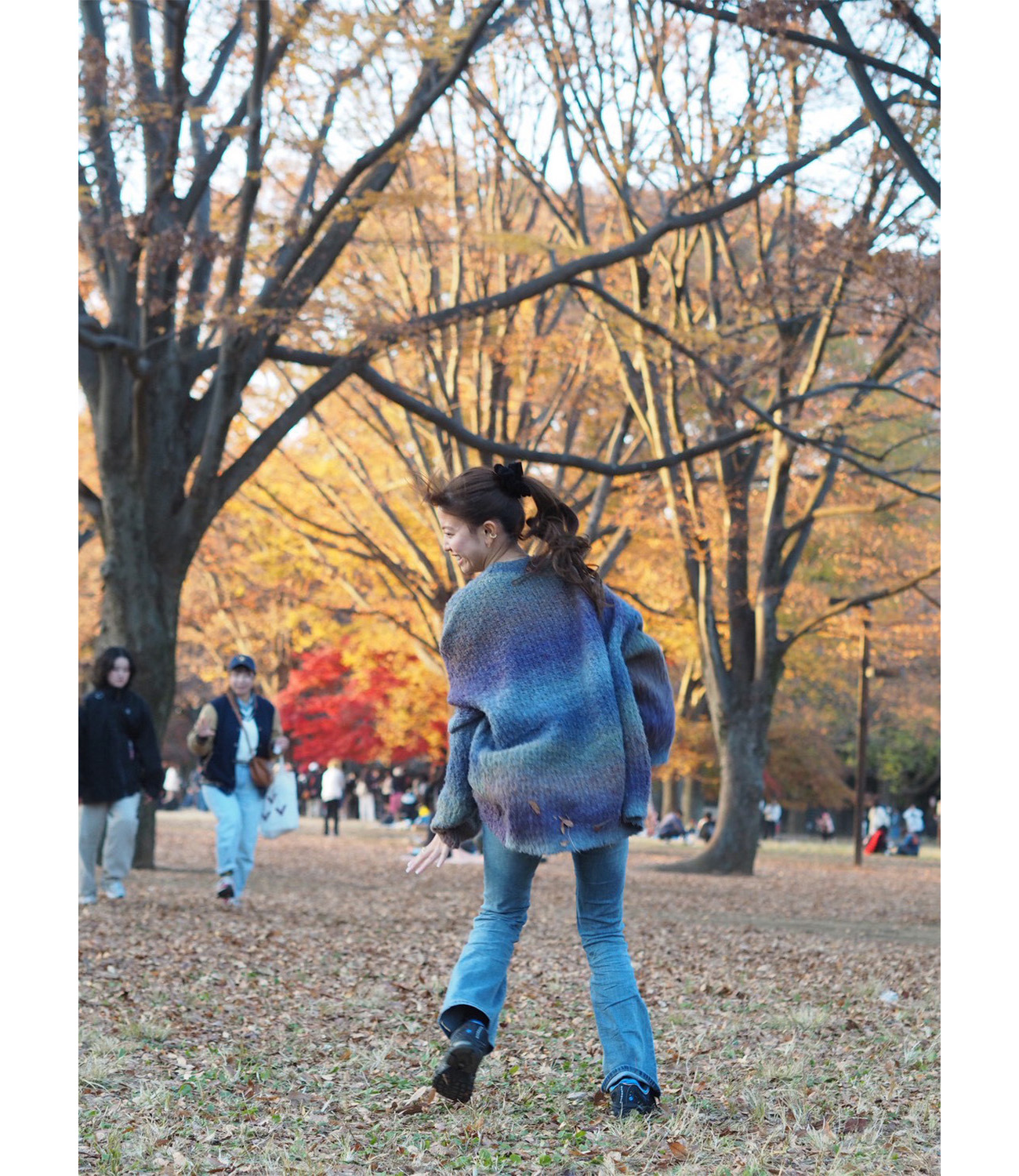 みんな遊ぶ時は本気モードだから、全力!気付いたらニットに落ち葉がたくさん付いてた。笑