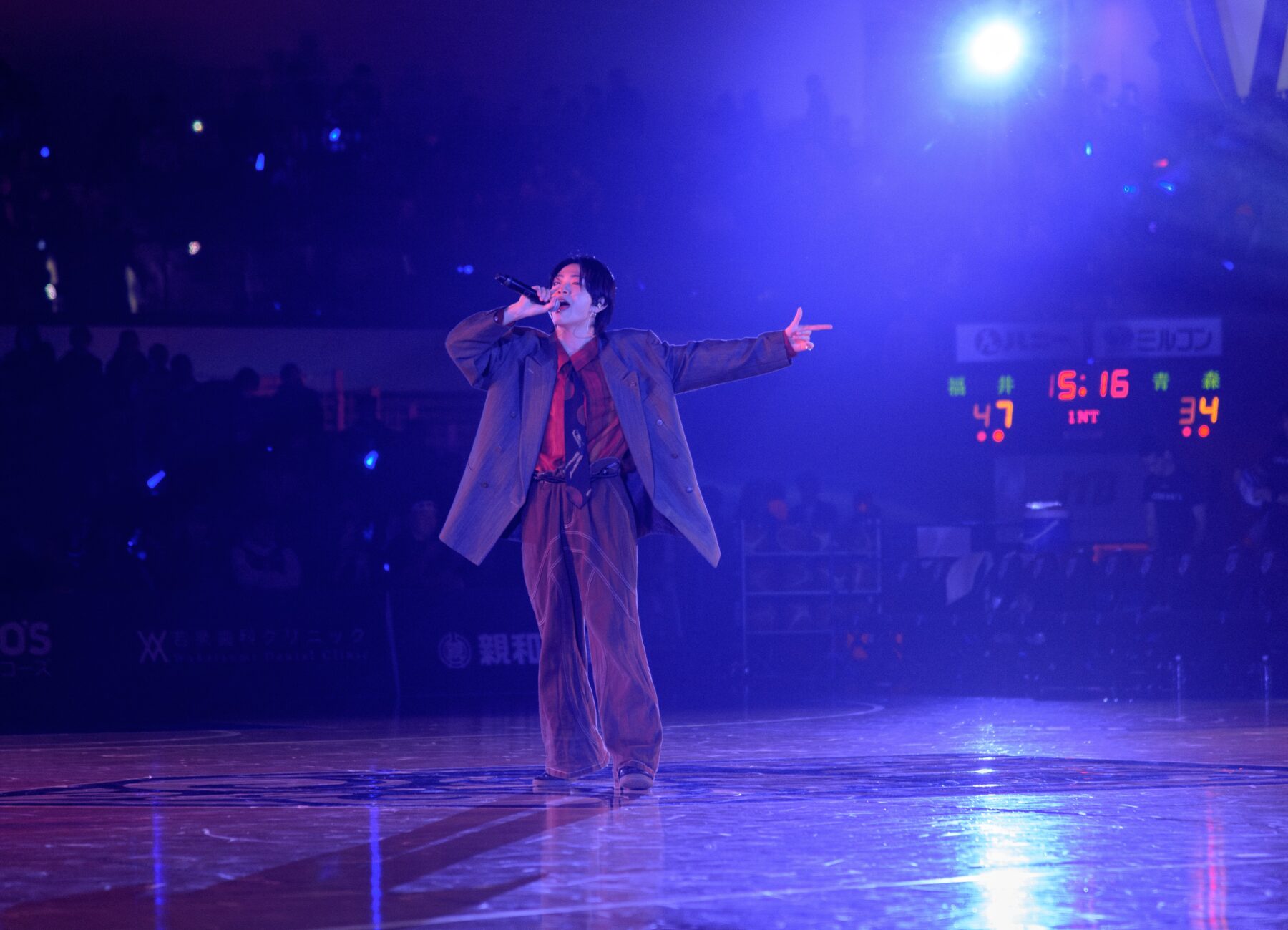 12月13日にセーレン・ドリームアリーナ(福井県営体育館)で行われた第13節の青森ワッツ戦では、ハーフタイムに福井出身のアーティスト荒巻勇仁さんが登場。約4000人の観客を前に圧巻のライブパフォーマンスで会場を盛り上げました。