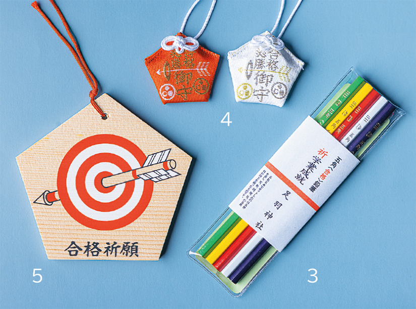 3.合格鉛筆は合格にちなんだ「五角形の鉛筆」500円。5色は5教科を表している。
