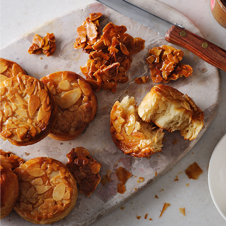 画像上は、国産小麦と国産バター100%を使用した軽やかなデニッシュ生地に、アーモンドのキャラメリゼを散りばめた、新商品の「フロランタン・デニッシュ」。甘く香ばしいアーモンドと芳醇なデニッシュの組み合わせは至福の味です。こちらも注文してそのまま自宅の冷凍庫にストックしておけば、食べたい時にいつでも召し上がれます。
