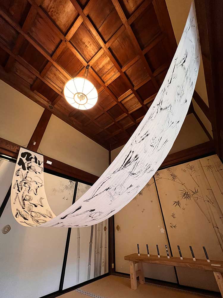 また「NOW」では書き続けることの意味を、墨を含ませた筆でかすれるまで描くことで表現し、「念」では観覧者参加型の作品を通じて「永遠」という概念への新しい解釈を提示しています。