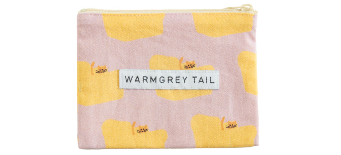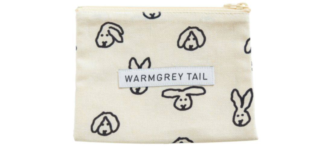 『WARMGREY TAIL』のロゴをあしらったファブリックバッグ。シンプルな装いに、さりげないアクセントを添えてくれます。
