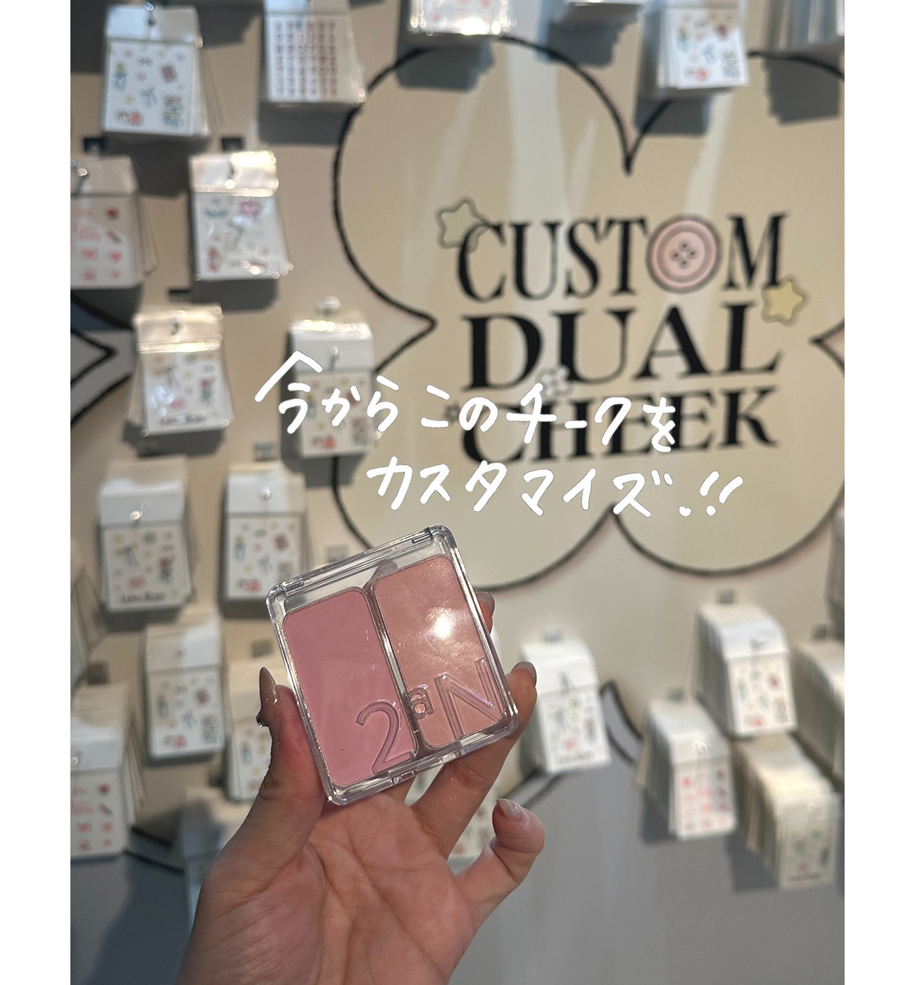 チークケースを流行りのシールでカスタム出来るイベントだったのですが、センスがなくて難しかったです!笑笑