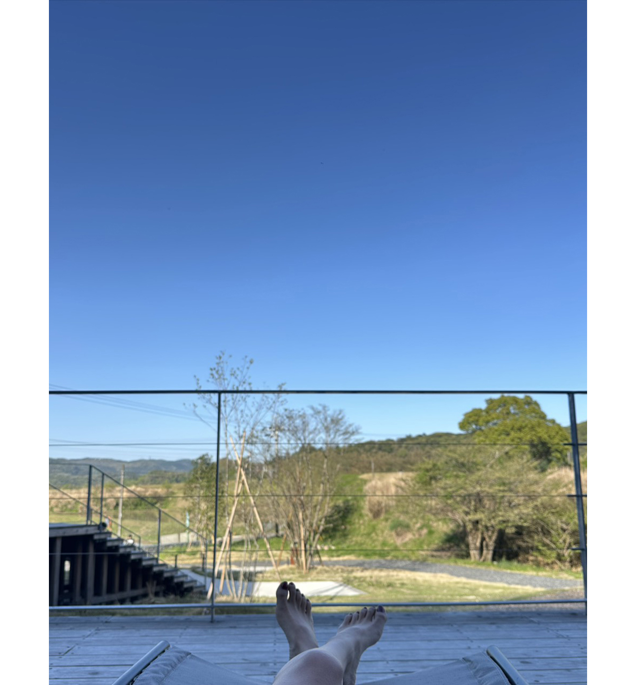 外気浴スペースもいろいろあって、テントで寝転がれたり、岩の上で坐禅みたいに座ってみたり、山の麓の方や、田んぼや畑を見ながらなど、広くて充実度高めです👏