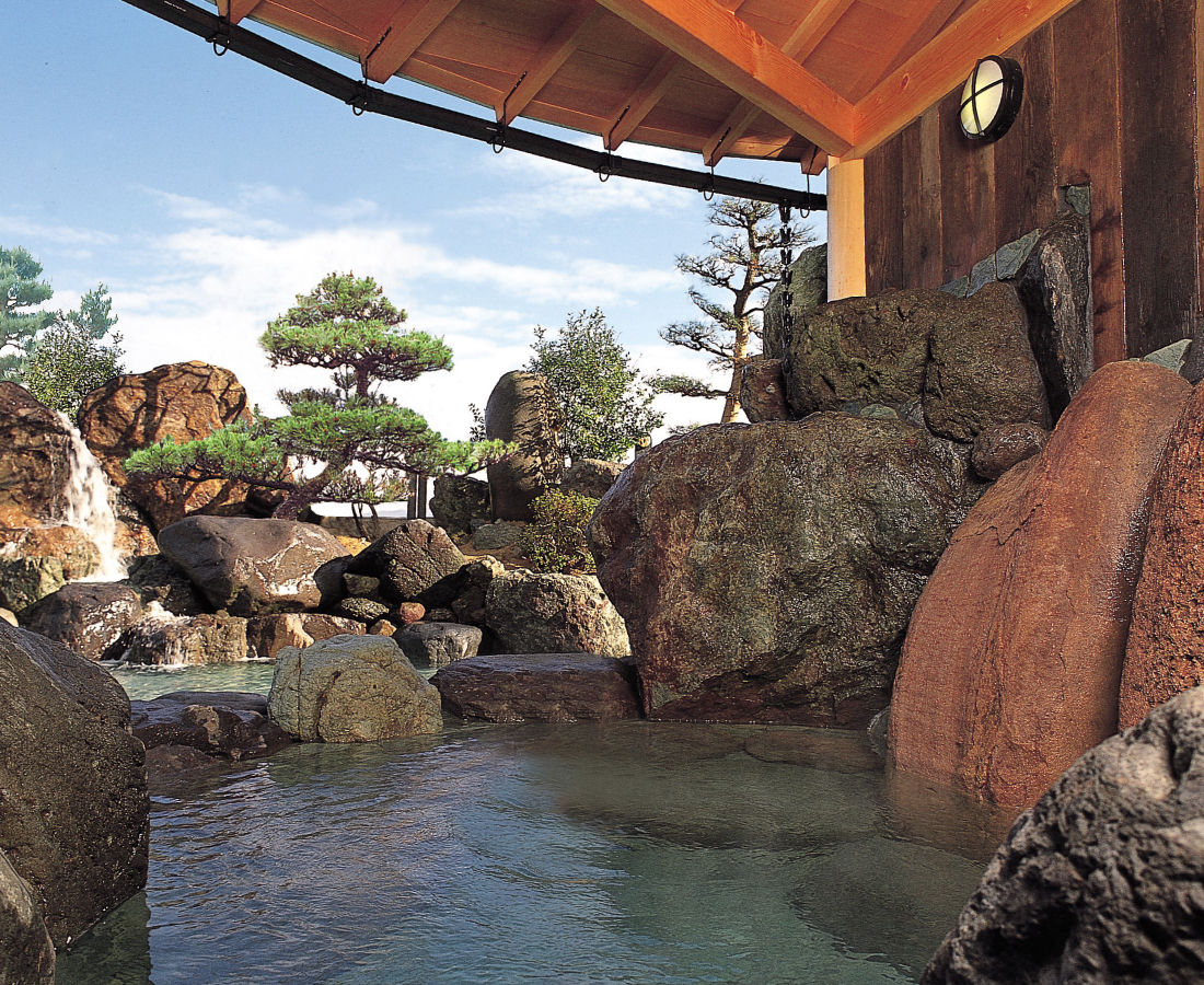 和と洋がとけあう異国情緒たっぷりの雰囲気が人気の湯宿。庭園を囲むように配された客室からは、のどかな田園風景や広大な山並みが臨め、ゆったりと過ごすことができます。美しい日本庭園を見渡せる庭園露天風呂「天神の湯」や、重厚な雰囲気がある岩造りの大浴場など、いずれもお肌ツルツルの「美人の湯」として好評。湯守が管理する豊富な湯量も人気の理由です。姉妹館「あわらグランドホテル」「ゆ楽」のお風呂も無料で利用できるので、趣の異なる湯めぐりを楽しんで。