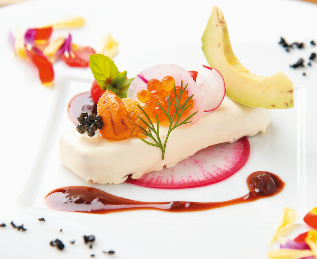 フレンチをベースに和洋中、さまざまな食材や調味料を使い、独特な味わいに仕上がっている料理が並ぶ。「気軽に来て、ゆっくりとくつろいでいってほしい」とオーナー。一皿ごとの美味しさをじっくりと堪能できる贅沢なひと時を過ごせそう。
