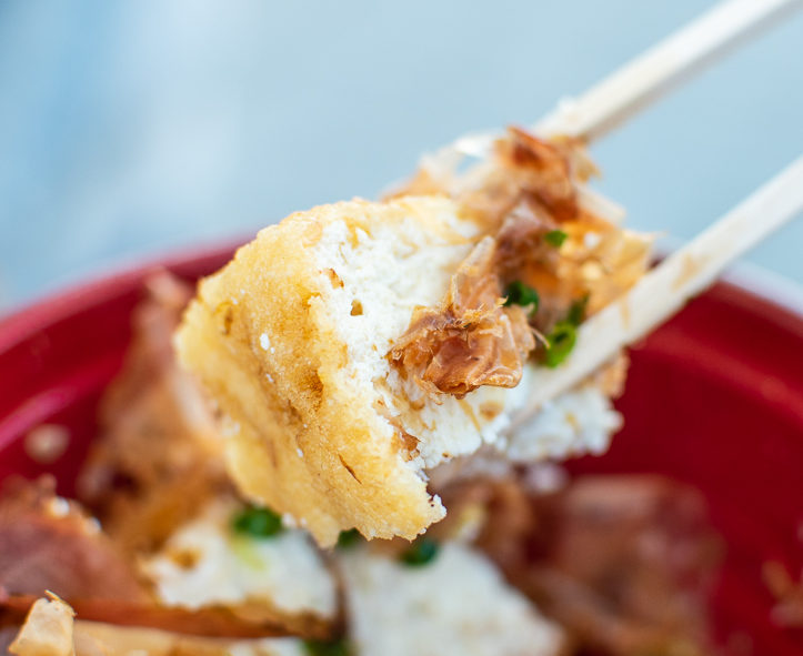 そして揚げている間、そのお店のあぶらげの特徴であったり、現在どのような工程なのか、といった“あぶらげ豆知識”も教えてくれるので、とてもためになり、面白い。根気のある方はすべてのブースに並んで、それぞれ揚げ師のお話も聞いて見て。