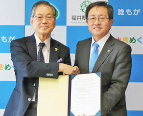来年四月に創造農学科を新設し、あわらキャンパスを開設する県立大は九日、あわら市と包括的連携協定を締結した。活力ある地域社会の実現を掲げ、市内での教育活動や研究成果の地域還元、地域との交流・連携を推進する。二〇二三年春の北陸新幹線県内開業に向け、あわらの魅力発信策も市と共に知恵を絞る。