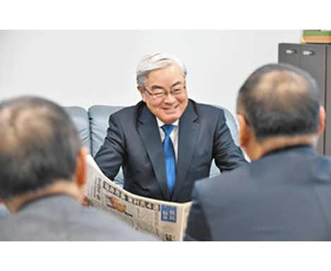 福井市長選で四選を果たした東村新一氏(67)は投開票から一夜明けた十六日、福井市の日刊県民福井を訪れ、阿部和久社長らに抱負を語った。教育環境の整備に一層力を入れる考えを示し、発信力を強化することで移住を促して人口減少に歯止めをかけると意気込んだ。(鈴木啓太、山本洋児)