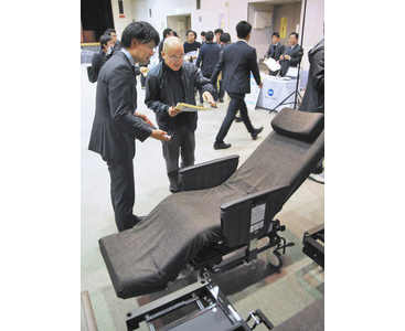 介護現場で活躍するロボットを集めた介護ロボット福井フォーラムが十八日、福井、敦賀の両市で開かれた。介護分野の人手不足を受け、ロボットの導入を検討してもらう狙いで県が主催。福祉施設で働く人や利用者の負担を軽くする製品九点が紹介された。