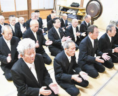 坂井市三国町新保の春日神社で十五日夜、市指定無形民俗文化財の船祝い歌「いざき」が奉納された。歌の伝承に努める「新保いざき保存会」の会員たちが独特の節回しで歌い上げ、今年一年の平穏や無病息災などを祈った。