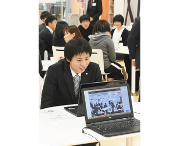 就職活動を控える学生に県内の企業を知ってもらう県主催の交流イベント「縁JOB2020新春スペシャル」が十九日、福井市のアオッサで開かれた。初めて「WEB(ウェブ)相談会」を導入。県外の自宅などにいながら、インターネットの映像中継アプリケーションを使って、会場の採用担当者と話ができるようにした。