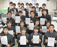 科学技術高校(福井市)情報工学科の一年生二十五人が、情報処理の国家試験「ITパスポート」に合格した。ほとんどの生徒が受験した昨年十二月の試験は高校生の合格率が27・4%と低かったが、力を合わせて取り組んだ受験勉強で難関を突破した。