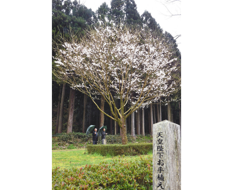 県内で二〇〇九年に開かれた全国植樹祭で、当時天皇陛下だった上皇さまが手植えされたウスズミザクラが一日、一乗谷朝倉氏遺跡(福井市城戸ノ内町)の一角で満開を迎えた。例年以上に多くの花を咲かせている。