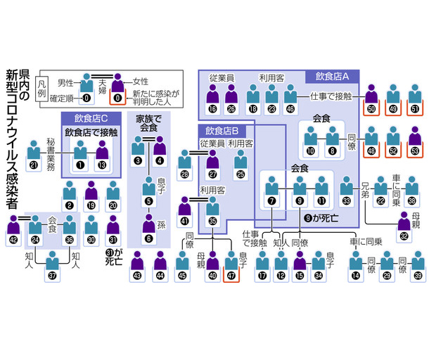 新型コロナウイルスの感染拡大で、福井市の八十代女性が五日、死亡した。県内二人目の死者。新たに七人の感染も確認され、計五十三人になった。感染拡大に歯止めがかからない状況になっている。
