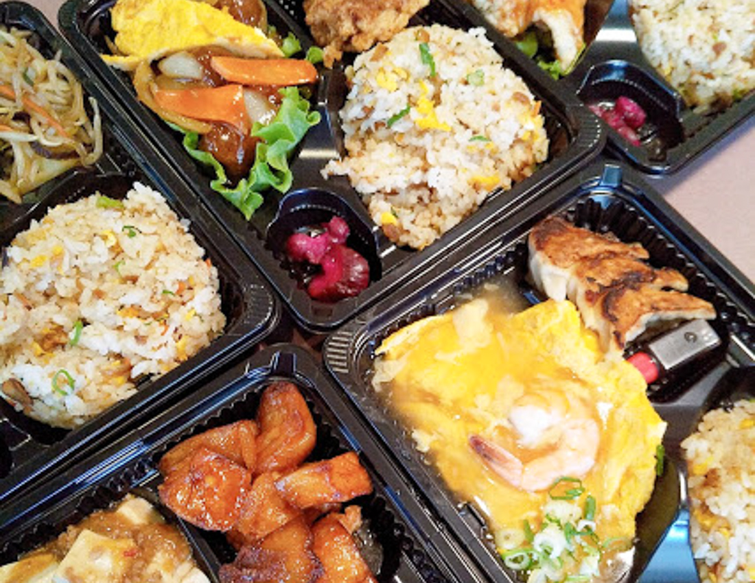 店人気ナンバー1の焼飯に料理2品が付いたお得な弁当。メイン料理は、「唐揚げ」「鶏の甘酢」「えび玉」「野菜炒め」「鶏のチリソース」「肉丸子」の中から選べる。1品料理の注文も対応可。
