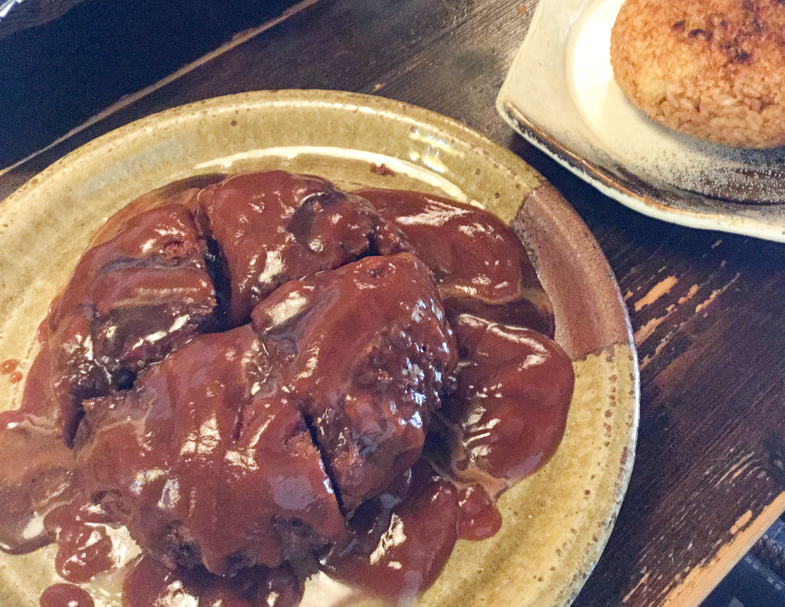 「ビッグ焼おにぎり」500円(税込)もぜひ一緒に。旬のうまい日本酒の量り売りも実施しており、格安で提供!