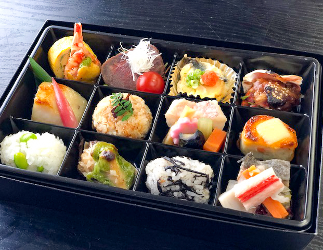 お母さんも喜ぶ、多彩な料理を少しずつ味わえる愛彩弁当。家族や友人とぜひ楽しんで。