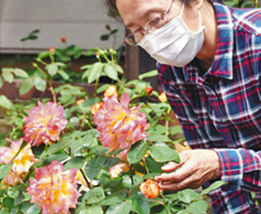 「アンネの日記」の著者で、世界平和を祈り続けたアンネ・フランクの形見とも呼ばれる「アンネのバラ」が、高浜町南団地の聖イエス会高浜教会で見頃を迎え、色鮮やかに咲いている。