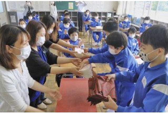 新型コロナウイルス予防策として、あわら市学校給食センターの職員たちが、配膳台のカバーやマスクケースを製作した。六月一日の学校再開、翌二日の給食開始に向けて市内の九小中学校に配布している。