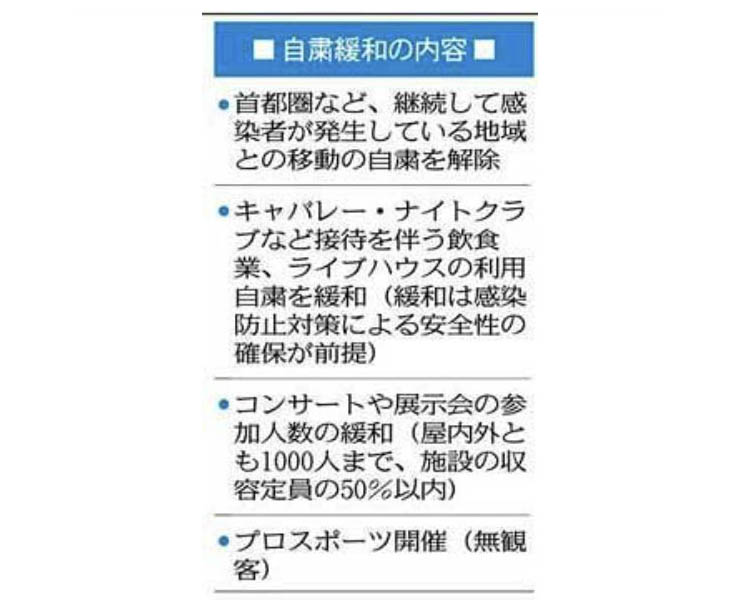 新型コロナウイルス感染症の感染第一波が収束したことを受け、県は十九日に行動自粛要請を一段階緩和する。首都圏などとの往来自粛が解除され、接客を伴う飲食店やライブハウスの利用自粛要請も終了。経済活動の再開と感染第二波の抑止を両立させる「第二段階」に移行する。(今井智文)