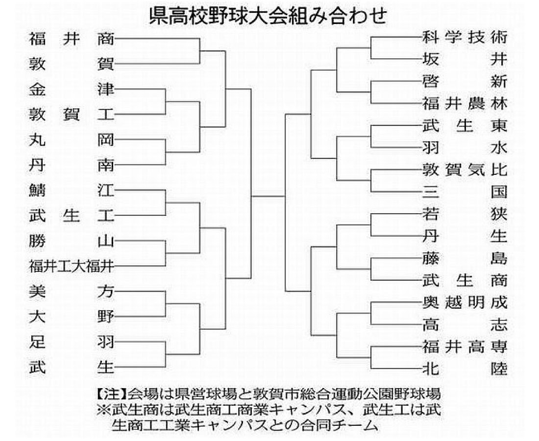 新型コロナウイルスの影響で中止となった全国高校野球選手権福井大会の代替大会となる県高校野球大会の組み合わせが一日、決まった。福井市内で県高野連の役員による代理抽選が行われた。三十チームによるトーナメント戦は十八日に幕を明ける。