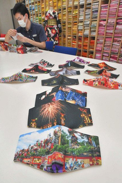 帯メーカーの小杉織物(坂井市丸岡町)が四十七都道府県の祭りの写真を一つずつプリントした四十七種類のマスクを作った。コロナ禍で全国の夏祭りや花火大会が相次いで中止される現状を「寂しくつらい」と感じた小杉秀則社長が「祭りの華やかさ、楽しさを表現できないか」と考案。来年の再開を願う思いが込められている。