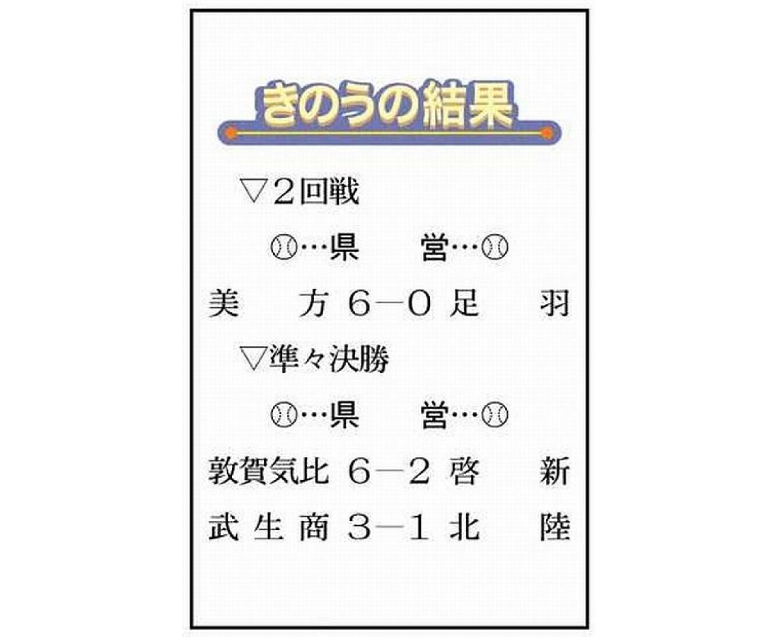 敦賀気比、武生商4強入り <高校野球・福井> inoue 6年前 県高校野球大会第六日は二十六日、福井市の県営球場で二回戦一試合と準々決勝二試合が行われた。 (中日新聞福井版)続きはこちらから 日々URALAからのお知らせをLINEで受け取れます!
