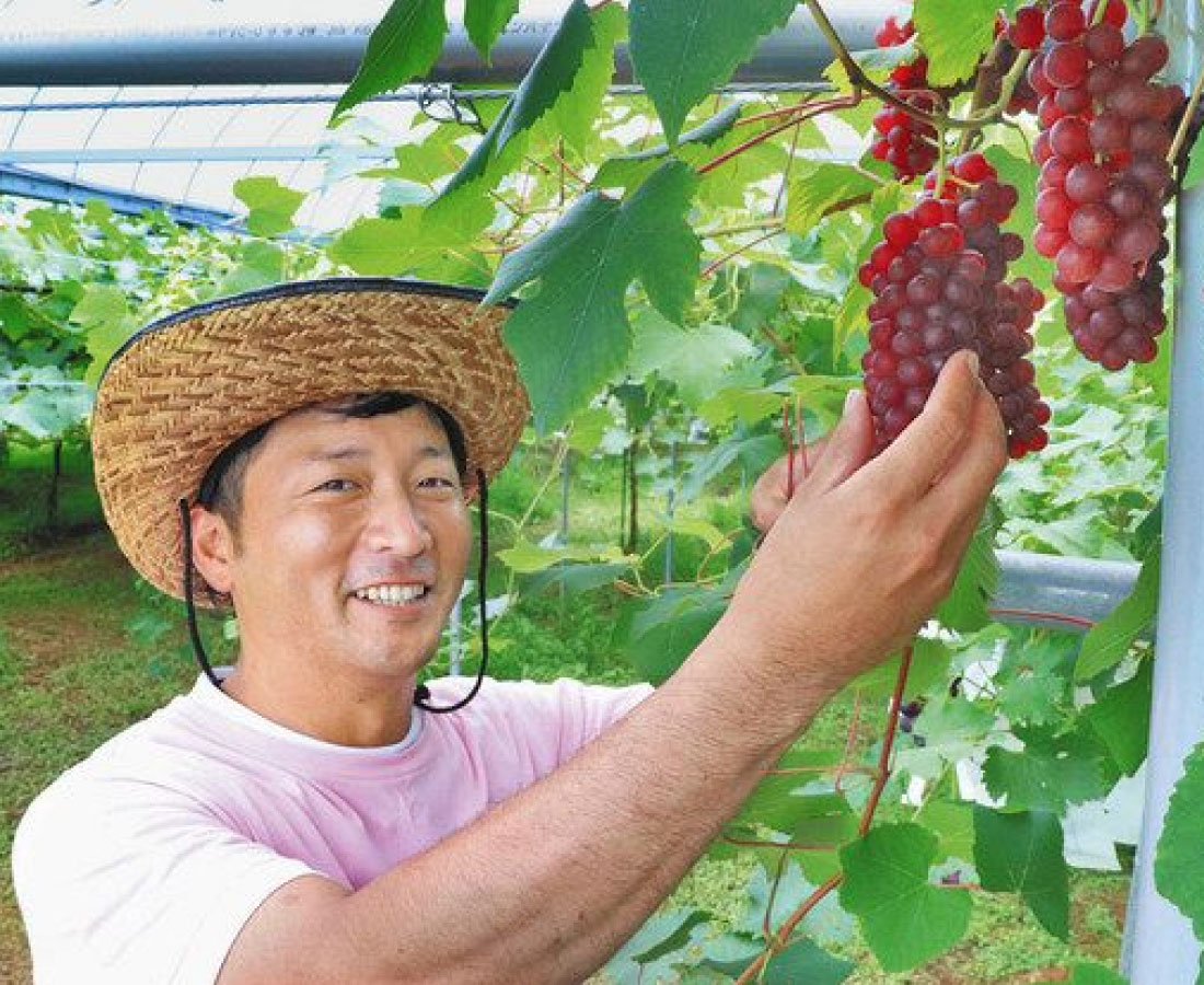 坂井市とあわら市に広がる“フルーツ王国”を貫く「坂井北部広域農道(フルーツライン)」沿いで二十三日、ブドウ狩りが楽しめる観光果樹園が開業する。オーナーは都会からあわら市へIターン就農した岡田英明さん(40)。構想から五年、苗木を植えて三年で、やっと立った夢のスタート地点。温泉街との連携も視野に「丹精したブドウで、あわら、福井の観光を盛り上げたい」と意気込む。(北原愛)